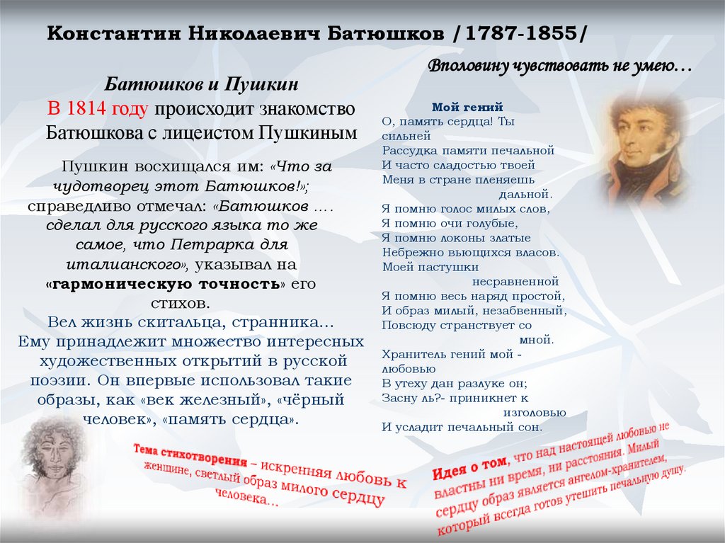 Константин Николаевич Батюшков /1787-1855/Батюшков и Пушкин