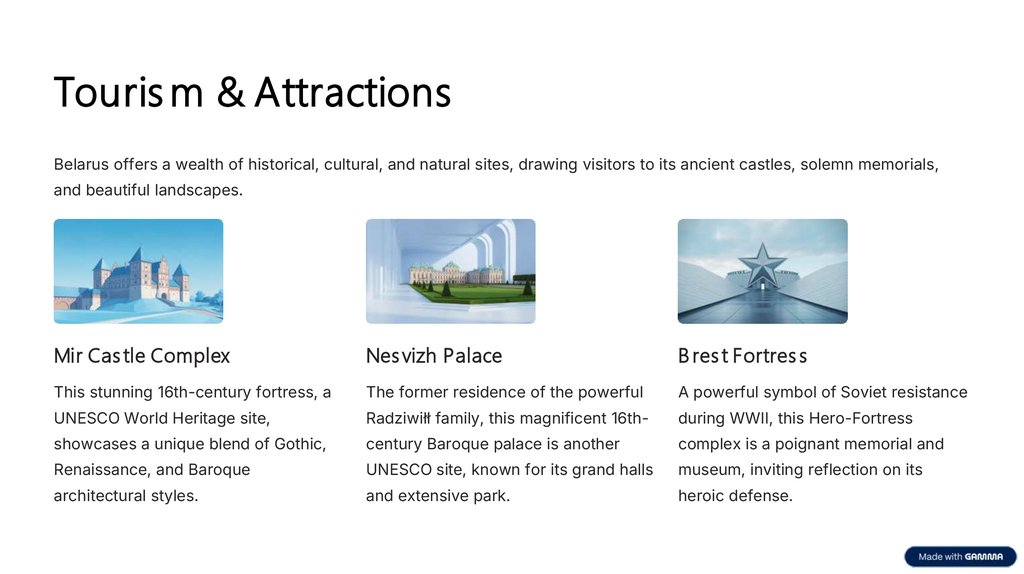 Touris m & AttractionsBelarus offers a wealth of historical, cultural, and natural sites, drawing visitors to its ancient castles, solemn memorials,