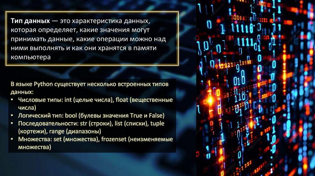 Тип данных — это характеристика данных,которая определяет, какие значения могут