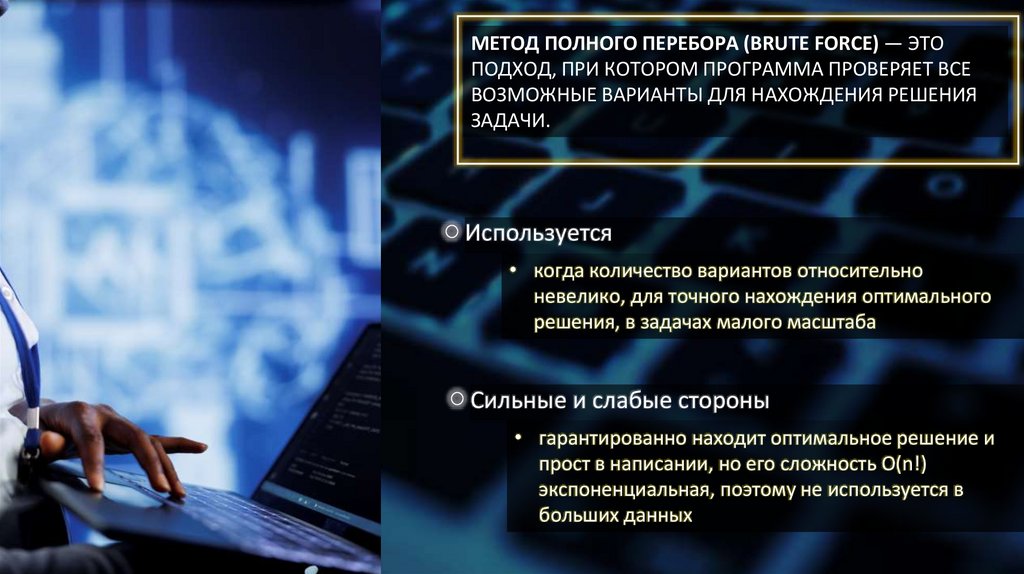 МЕТОД ПОЛНОГО ПЕРЕБОРА (BRUTE FORCE) — ЭТОПОДХОД, ПРИ КОТОРОМ ПРОГРАММА ПРОВЕРЯЕТ ВСЕ