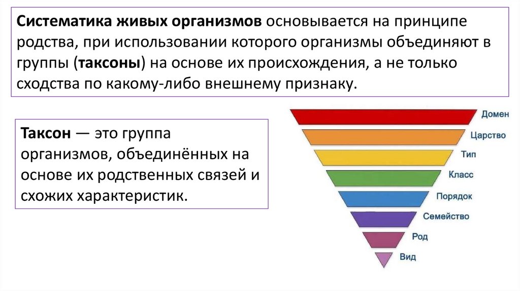 Принцип родства и таксоныСовременная классификация строится на принципе родства организмов