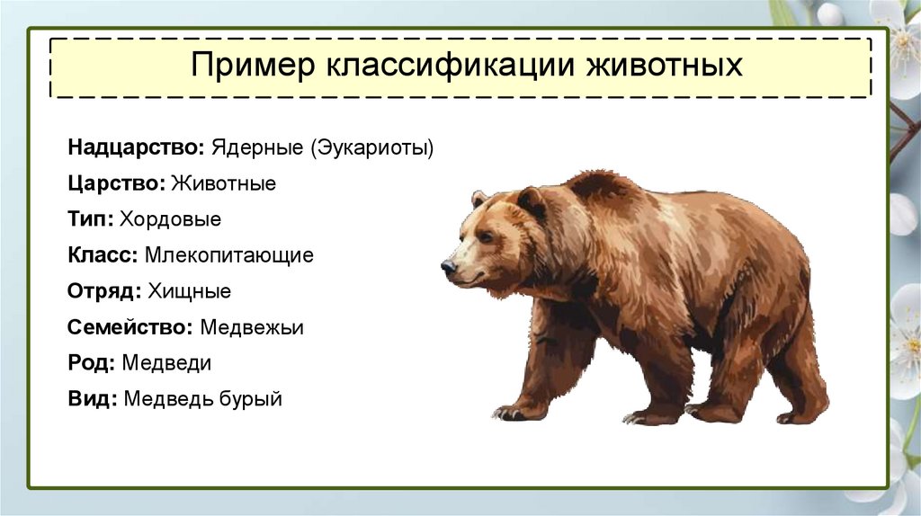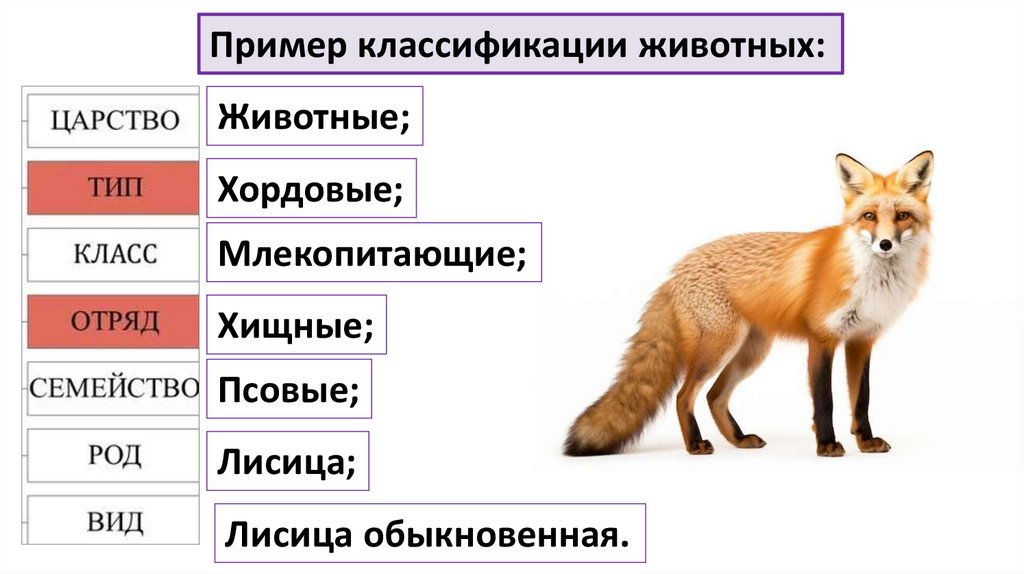 Пример классификации животныхНадцарство: Ядерные (Эукариоты)