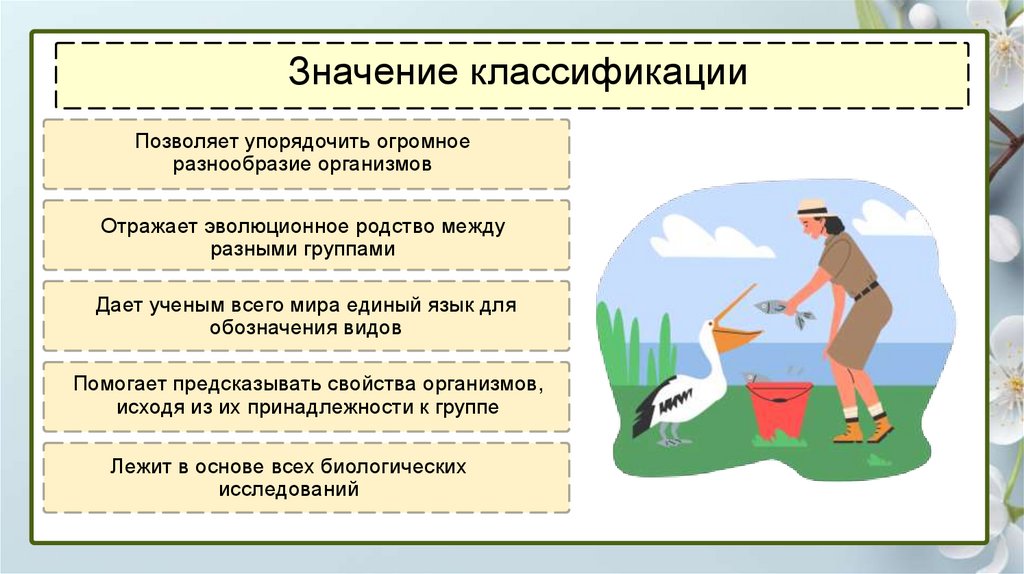 Классификация организмов — это способ распределения всехживых существ на группы по их общим признакам и