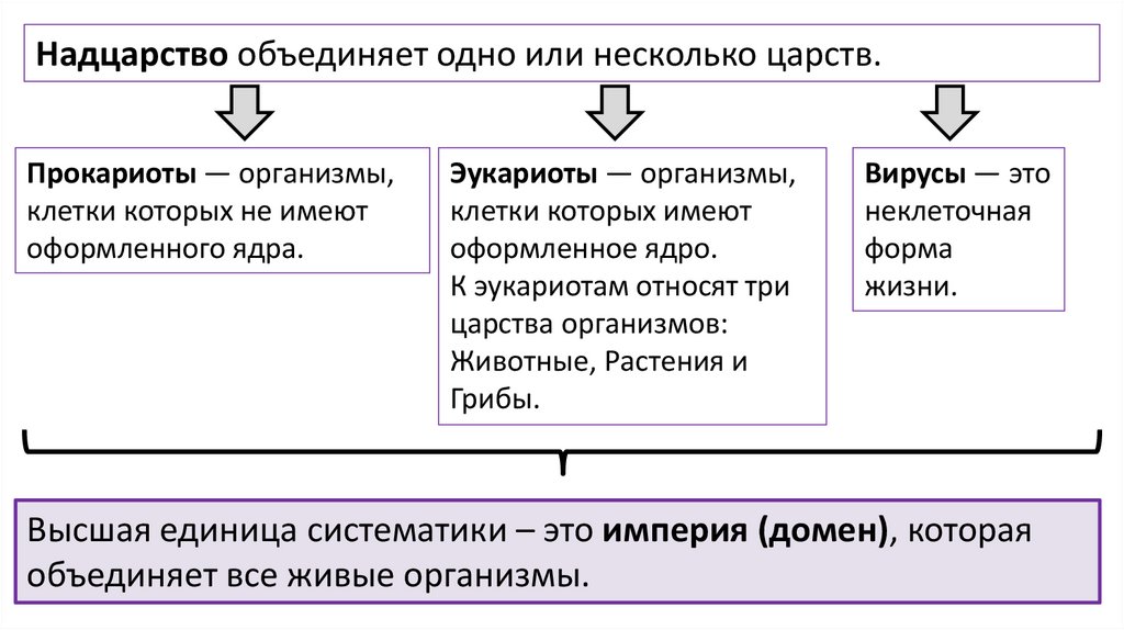 Надцарство объединяет одно или несколько царств.Прокариоты — организмы,