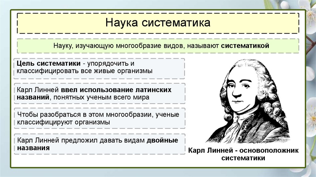 Наука систематикаНауку, изучающую многообразие видов, называют систематикой