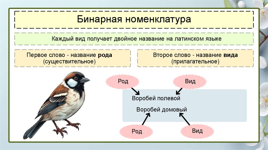 Бинарная номенклатураКаждый вид получает двойное название на латинском языке