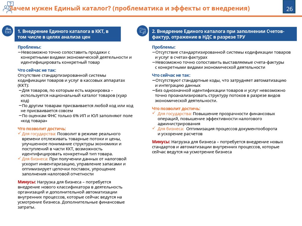 2. Внедрение Единого каталога при заполнении Счетовфактур, отражение в НДС в разрезе ТРУ