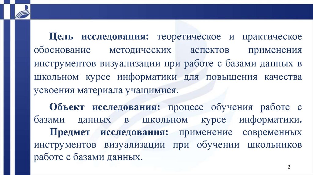 Цель исследования: теоретическое и практическоеобоснование