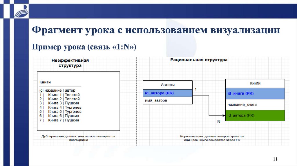 Фрагмент урока с использованием визуализацииПример урока (связь «1:N»)