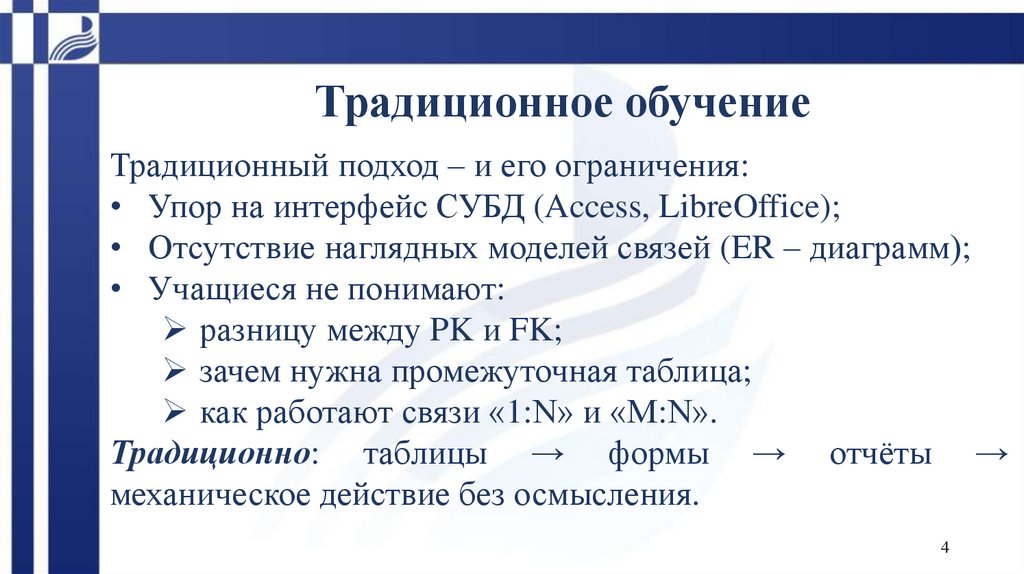 Традиционное обучениеТрадиционный подход – и его ограничения: