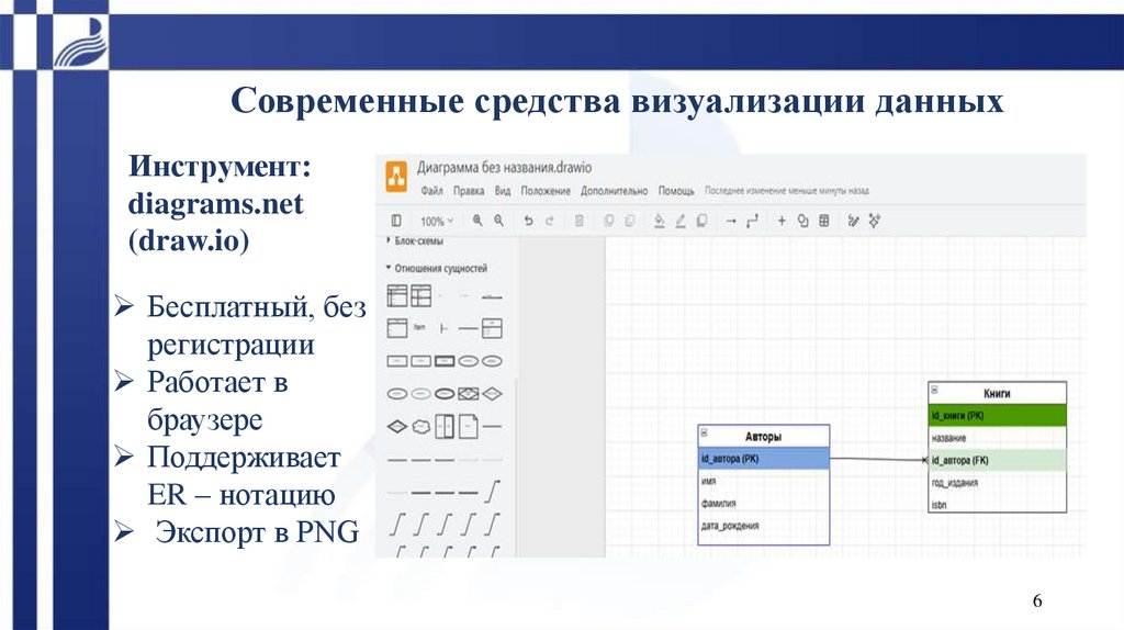 • Практика в draw.io: построение ER – диаграмм