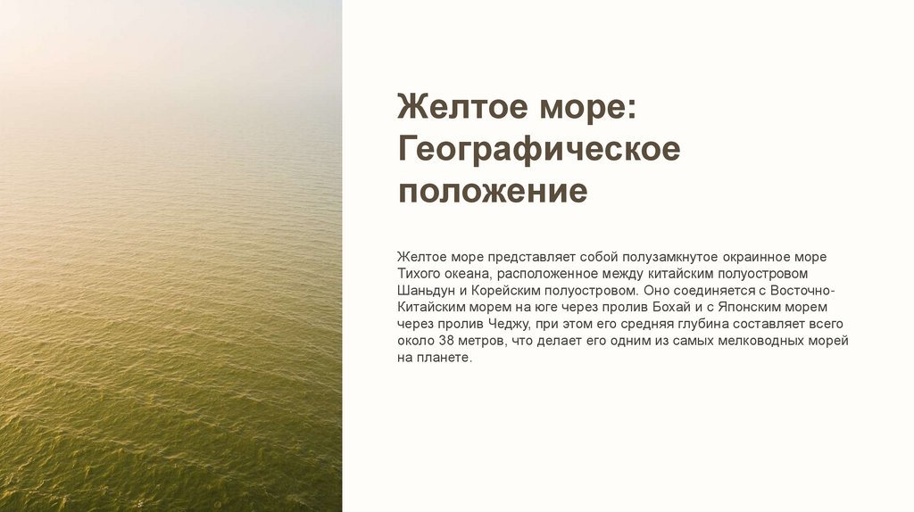 Желтое море представляет собой полузамкнутое окраинное море