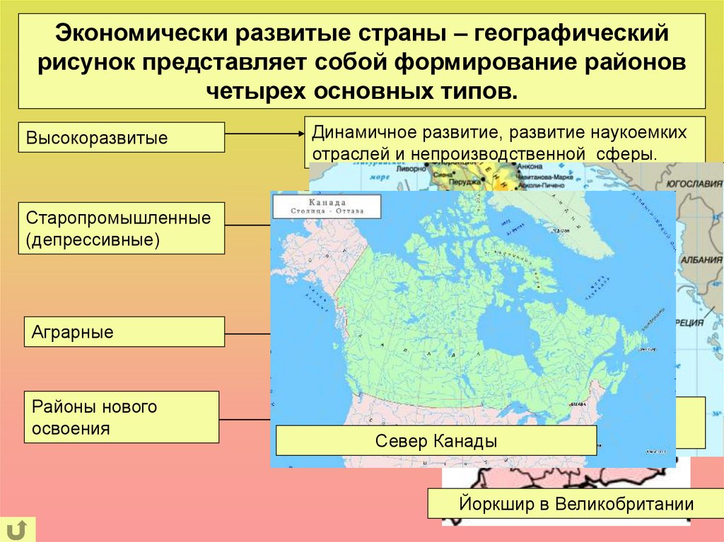 Экономически развитые страны – географическийрисунок представляет собой формирование районов