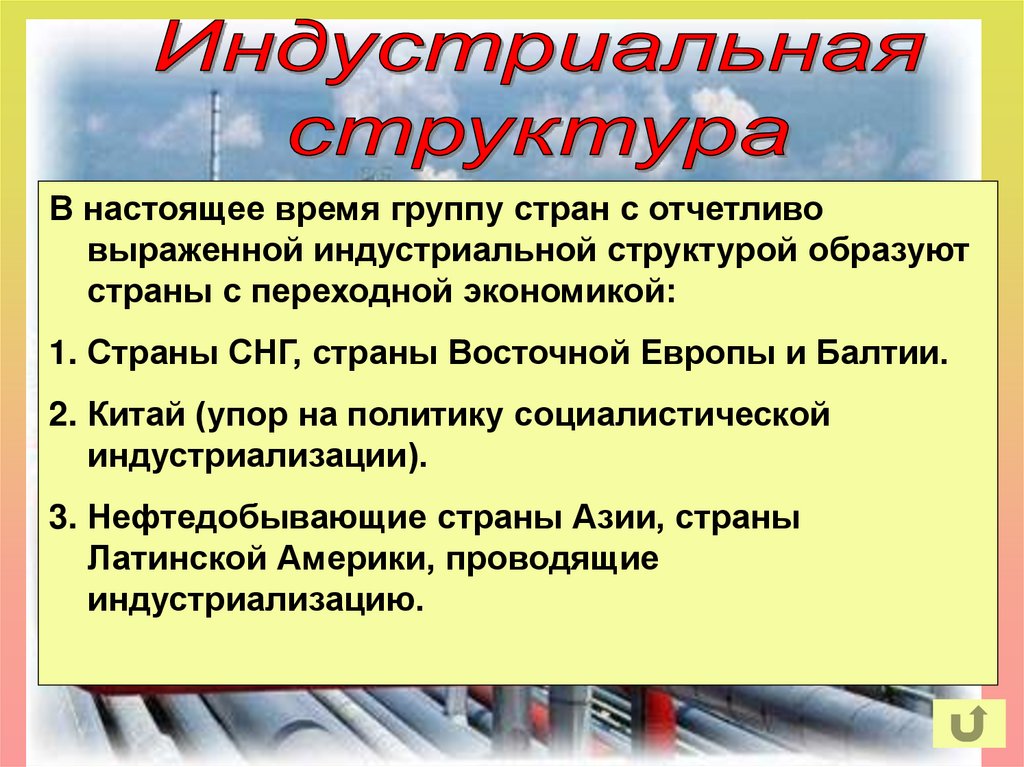 В настоящее время группу стран с отчетливоВ серединеиндустриальной