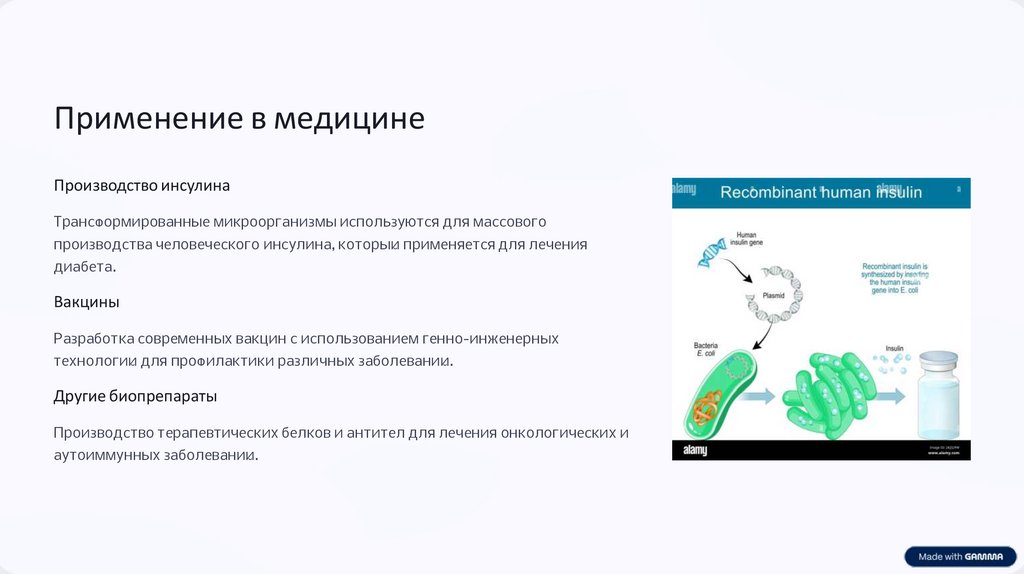 Применение в медицинеПроизводство инсулина