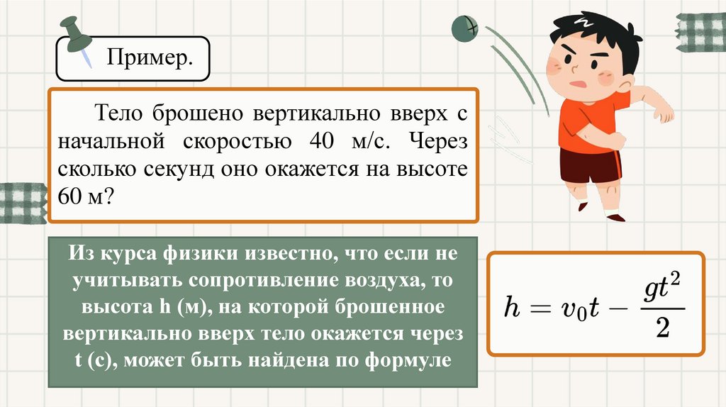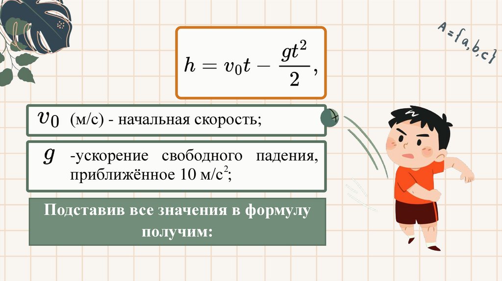 (м/с) - начальная скорость;-ускорение свободного падения,