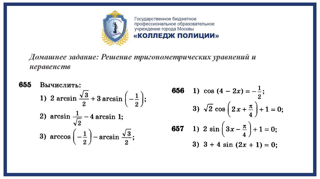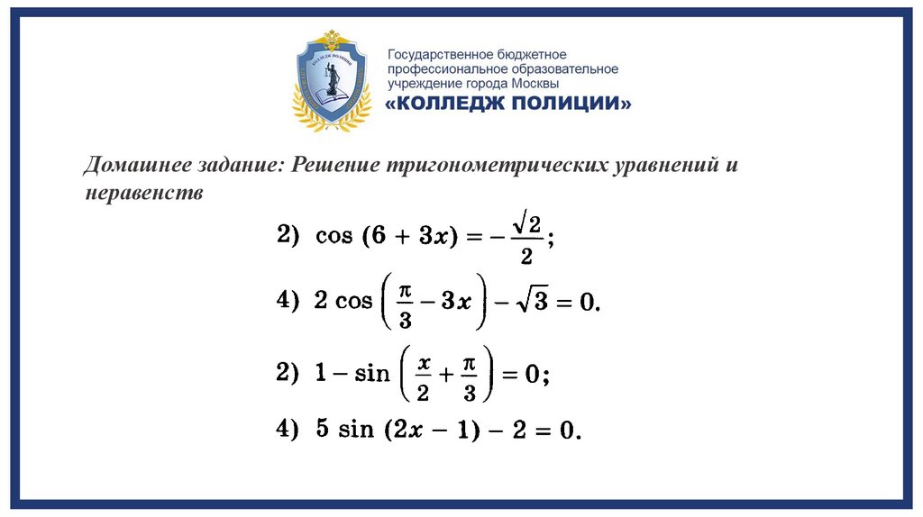 Домашнее задание: Решение тригонометрических уравнений инеравенств
