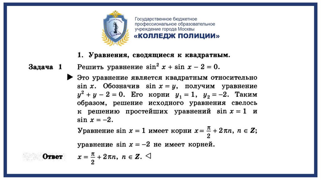 Тема 9: Решение тригонометрических уравнений и неравенств.2.