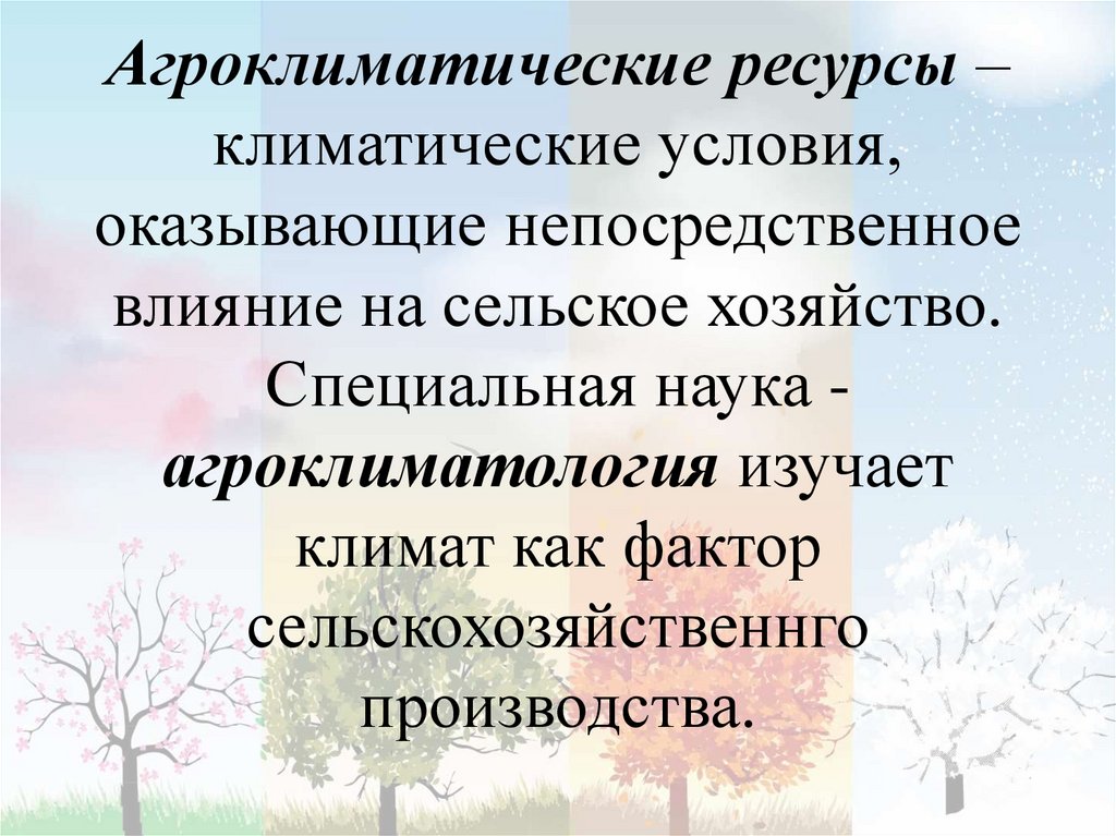 Агроклиматические ресурсы –климатические условия,