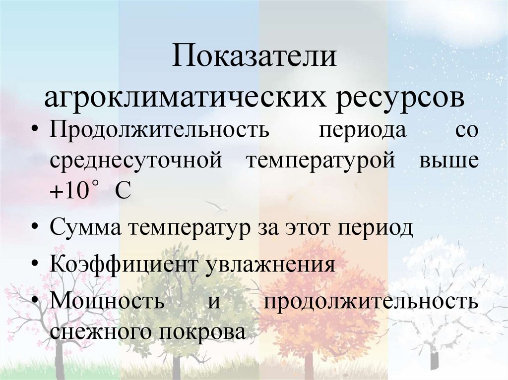 Показателиагроклиматических ресурсов