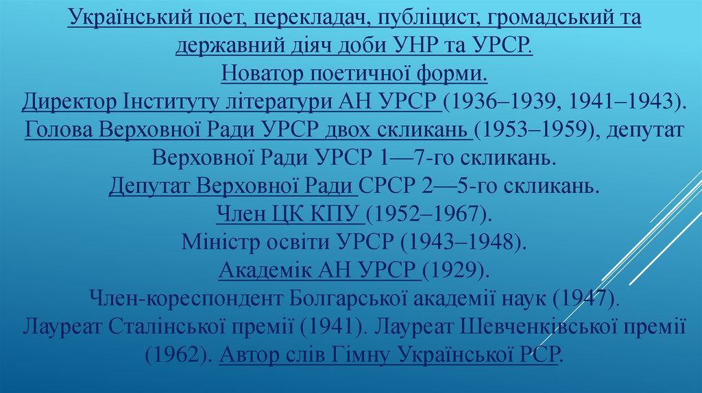 (1962). Автор слів Гімну Української РСР.