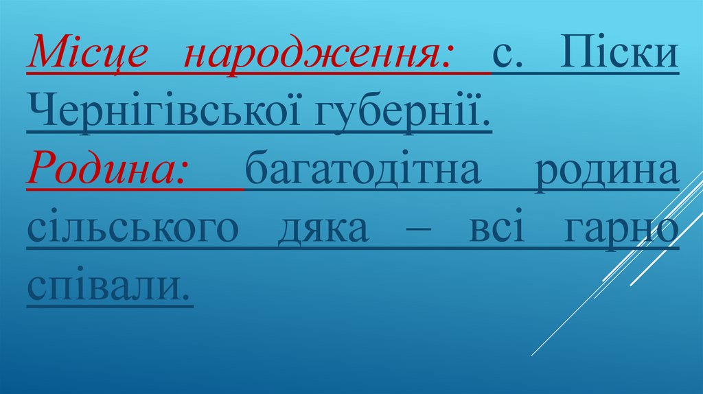 Місце народження: с. ПіскиЧернігівської губернії.