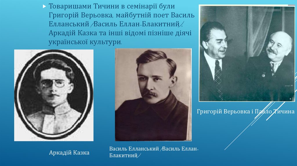 Товаришами Тичини в семінарії булиГригорій Верьовка, майбутній поет Василь