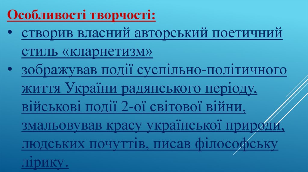 Особливості творчого періоду:• Поезія 20-х років ХХ ст. збагачувалася