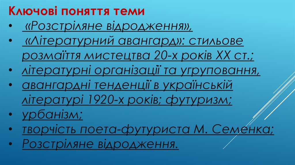 Ключові поняття теми• «Розстріляне відродження»,