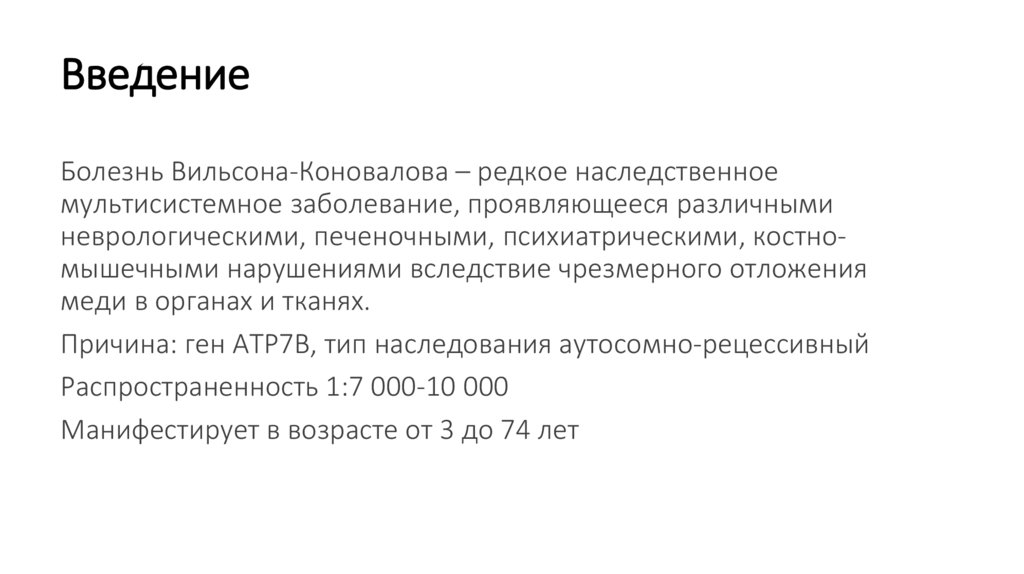 ВведениеБолезнь Вильсона-Коновалова – редкое наследственное