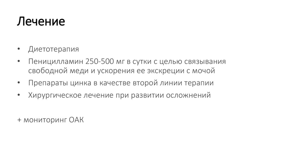 • Пеницилламин 250-500 мг в сутки с целью связывания