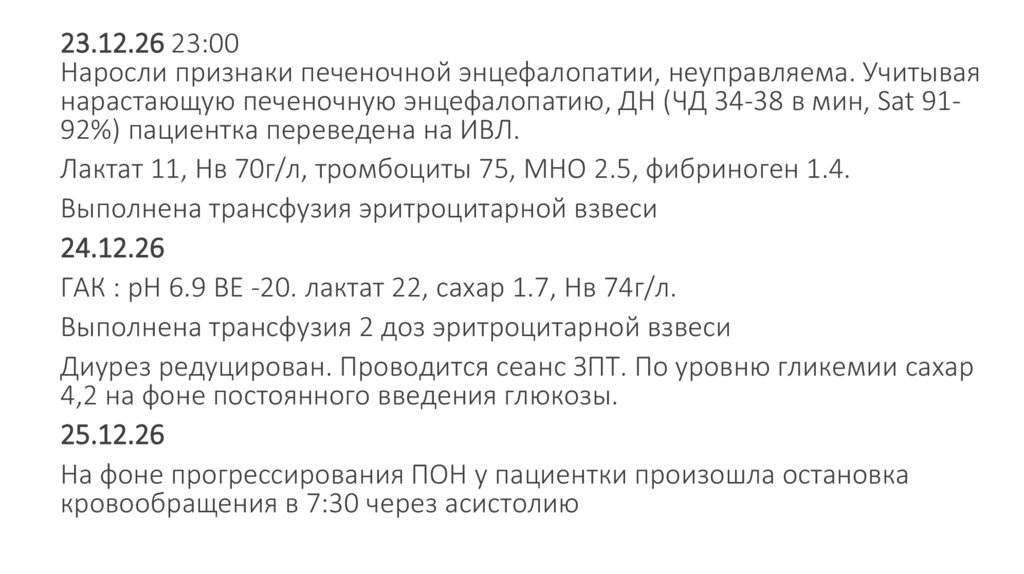23.12.26 23:00Наросли признаки печеночной энцефалопатии, неуправляема. Учитывая