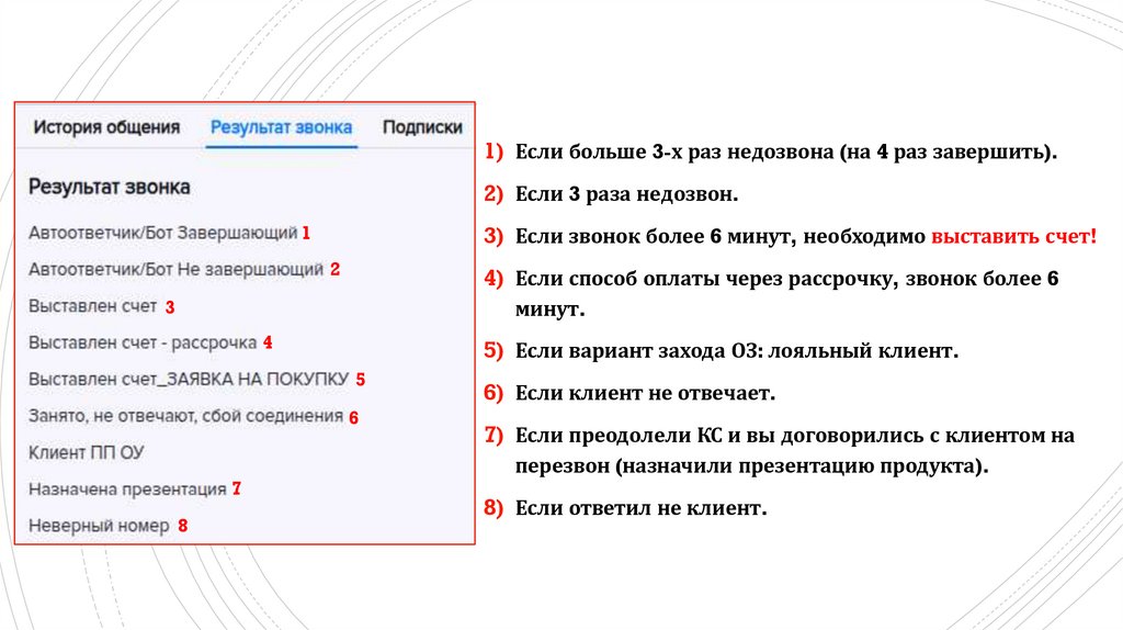 3) Если звонок более 6 минут, необходимо выставить счет!