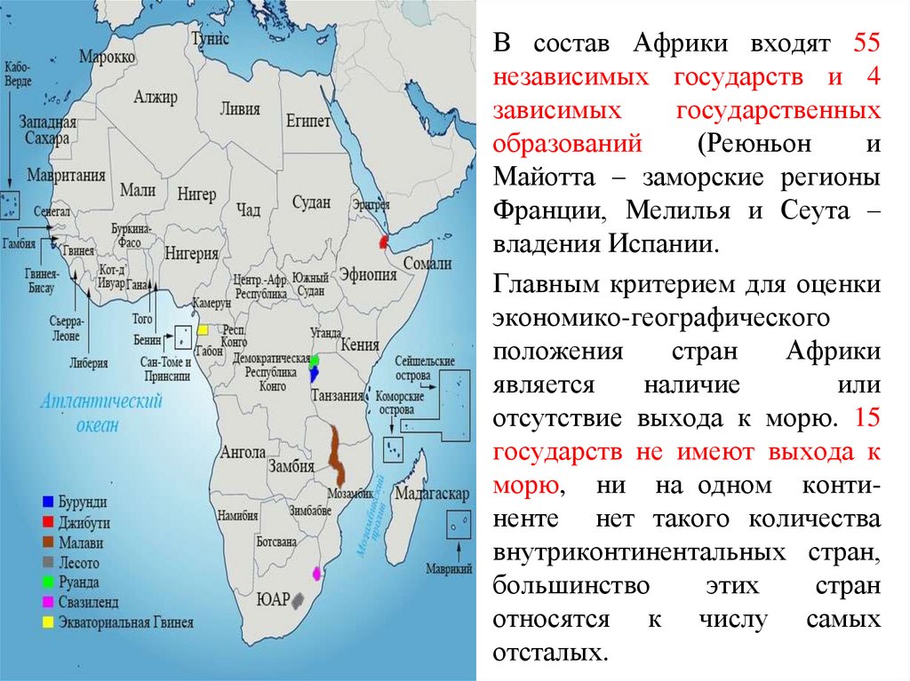 В состав Африки входят 55независимых государств и 4