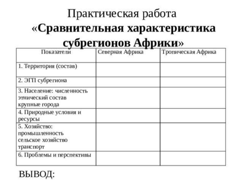 1. География РЕГИОНА АФРИКА