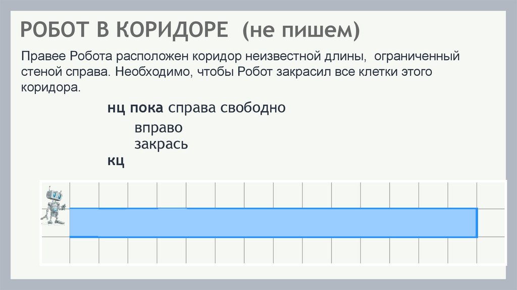 РОБОТ В КОРИДОРЕ (не пишем)Правее Робота расположен коридор неизвестной длины, ограниченный
