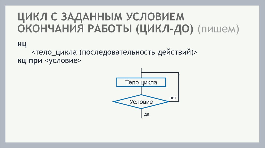 ЦИКЛ С ЗАДАННЫМ УСЛОВИЕМОКОНЧАНИЯ РАБОТЫ (ЦИКЛ-ДО) (пишем)