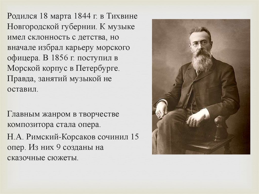 Родился 18 марта 1844 г. в ТихвинеНовгородской губернии. К музыке