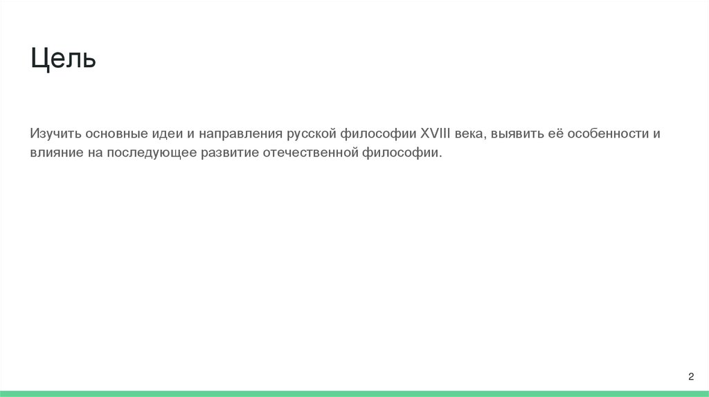 ЦельИзучить основные идеи и направления русской философии XVIII века, выявить её особенности и