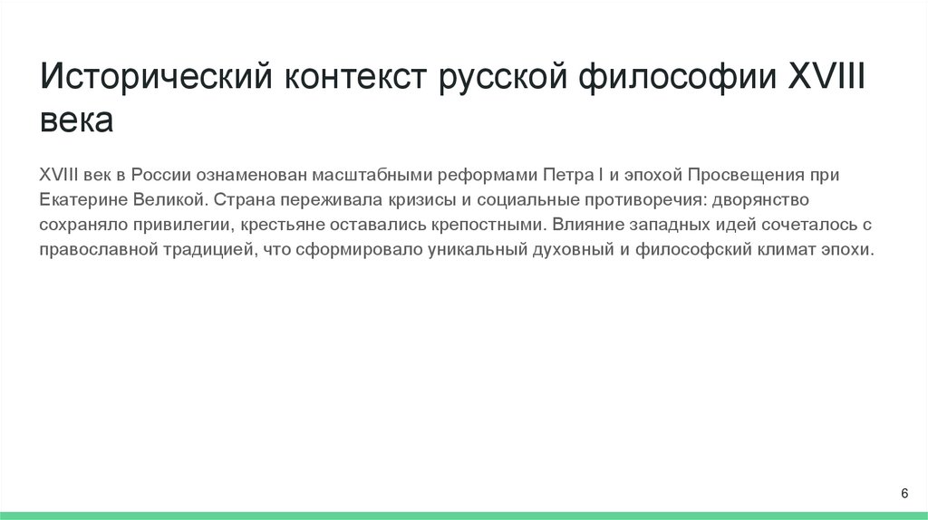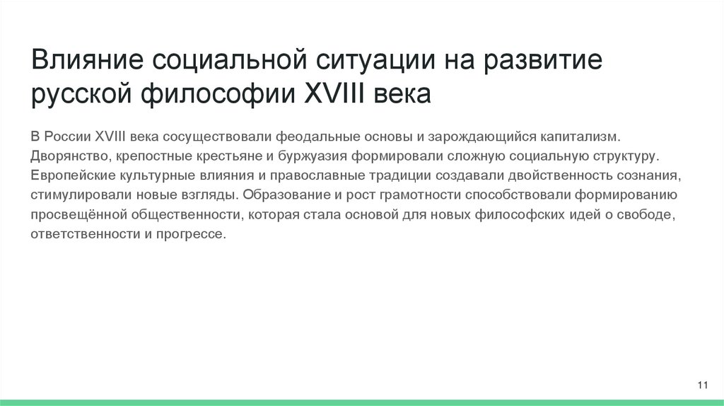 Влияние социальной ситуации на развитиерусской философии XVIII века