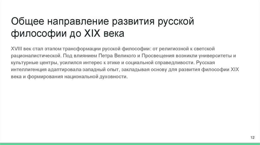 XVIII век стал этапом трансформации русской философии: от религиозной к светской