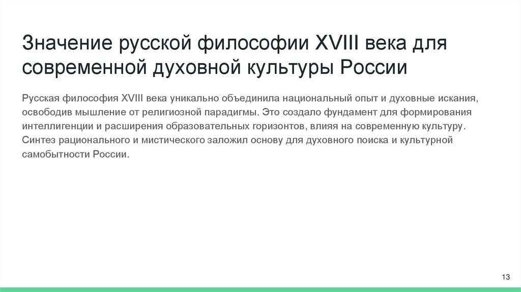 Значение русской философии XVIII века длясовременной духовной культуры России