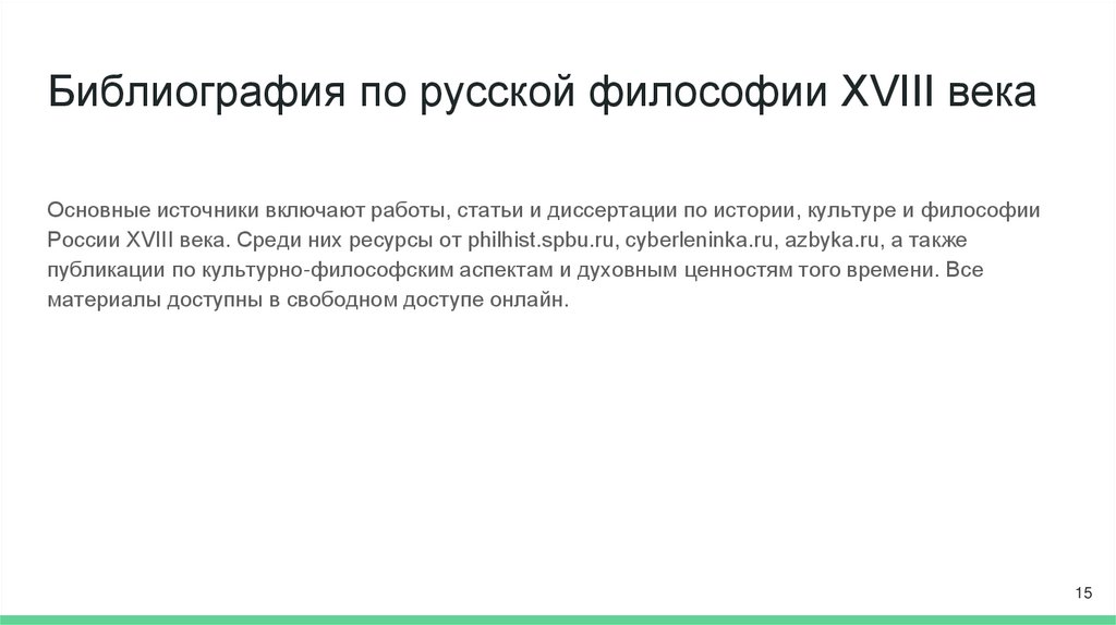 России XVIII века. Среди них ресурсы от philhist.spbu.ru, cyberleninka.ru, azbyka.ru, а также