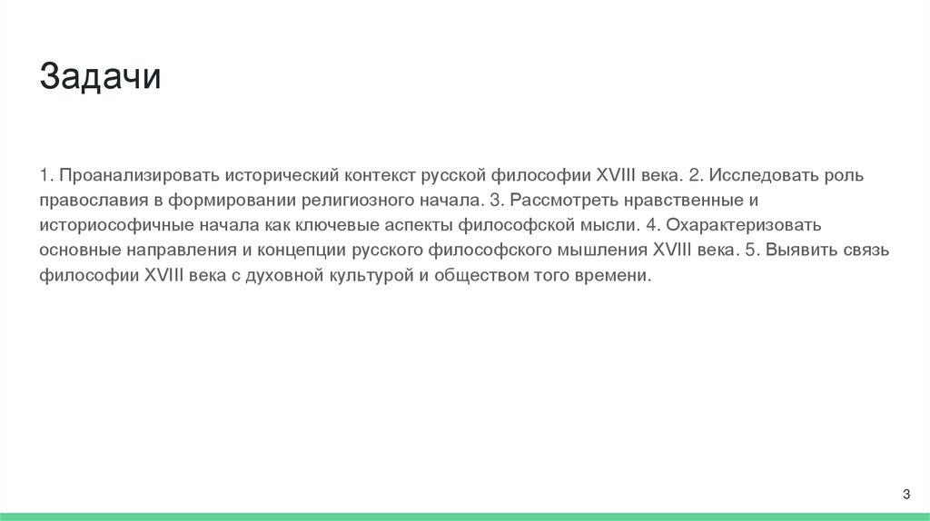 Задачи1. Проанализировать исторический контекст русской философии XVIII века. 2. Исследовать роль