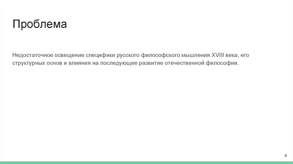 ПроблемаНедостаточное освещение специфики русского философского мышления XVIII века, его