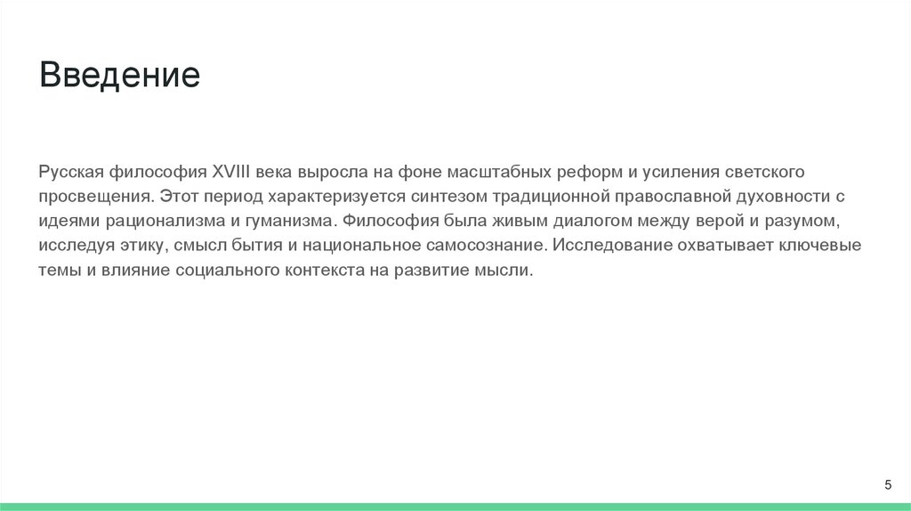 ВведениеРусская философия XVIII века выросла на фоне масштабных реформ и усиления светского