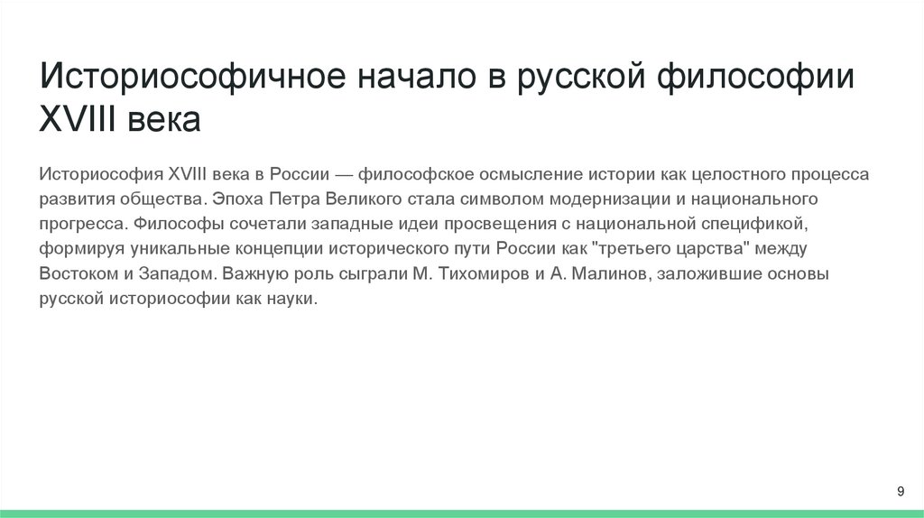 Историософия XVIII века в России — философское осмысление истории как целостного процесса