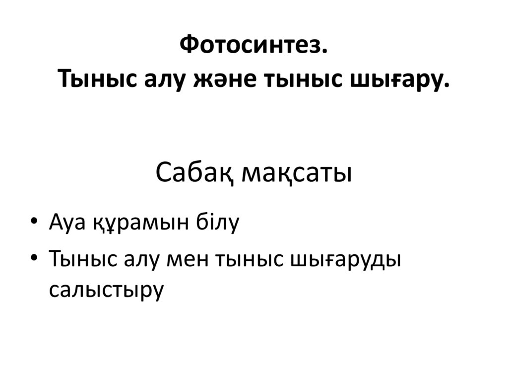 1. Фотосинтез. Тыныс алу және тыныс шығару.