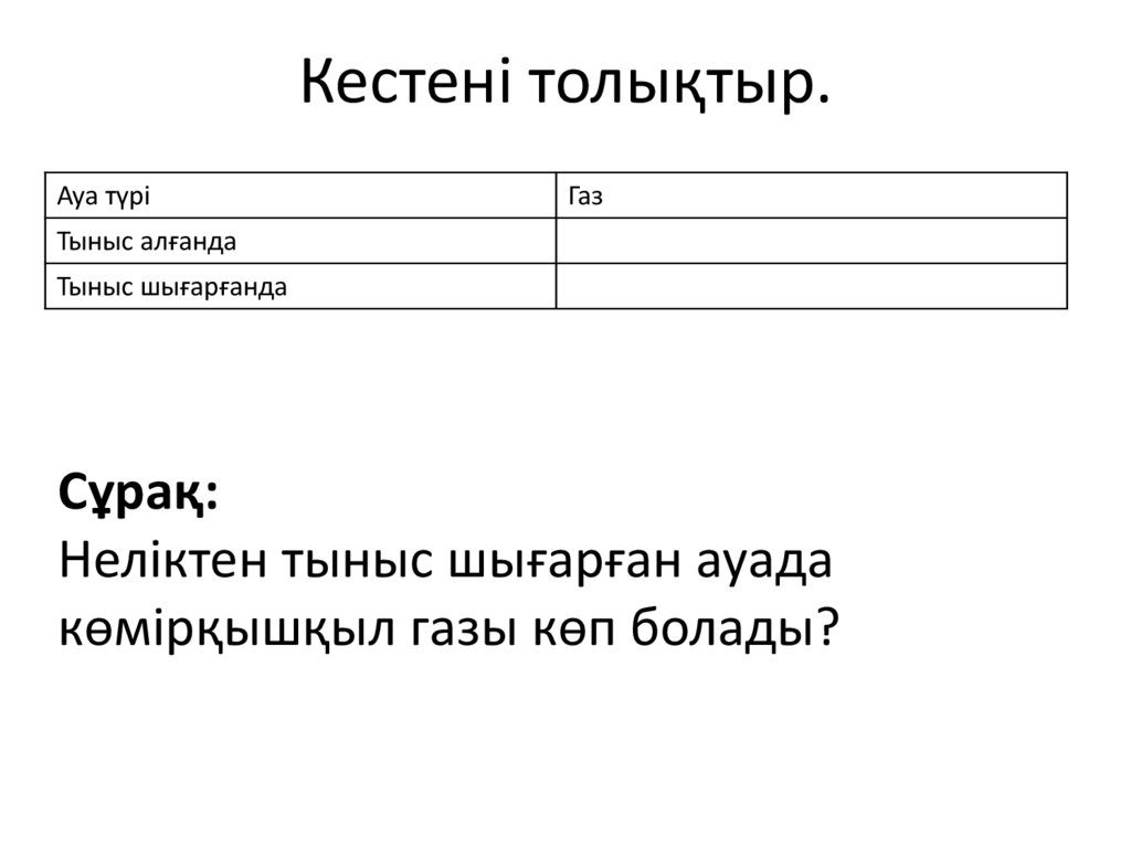 Кестені толықтыр.Ауа түрі