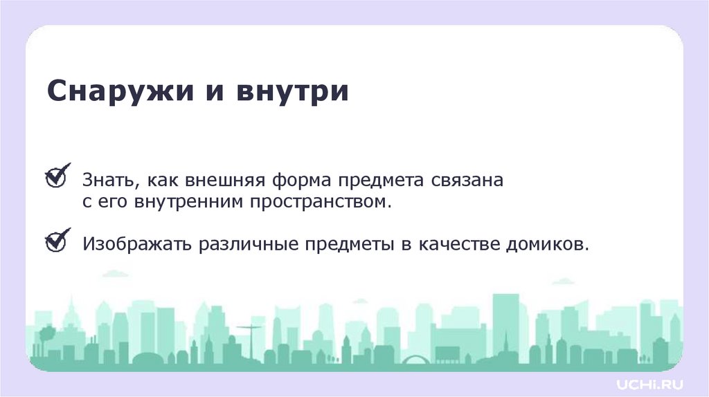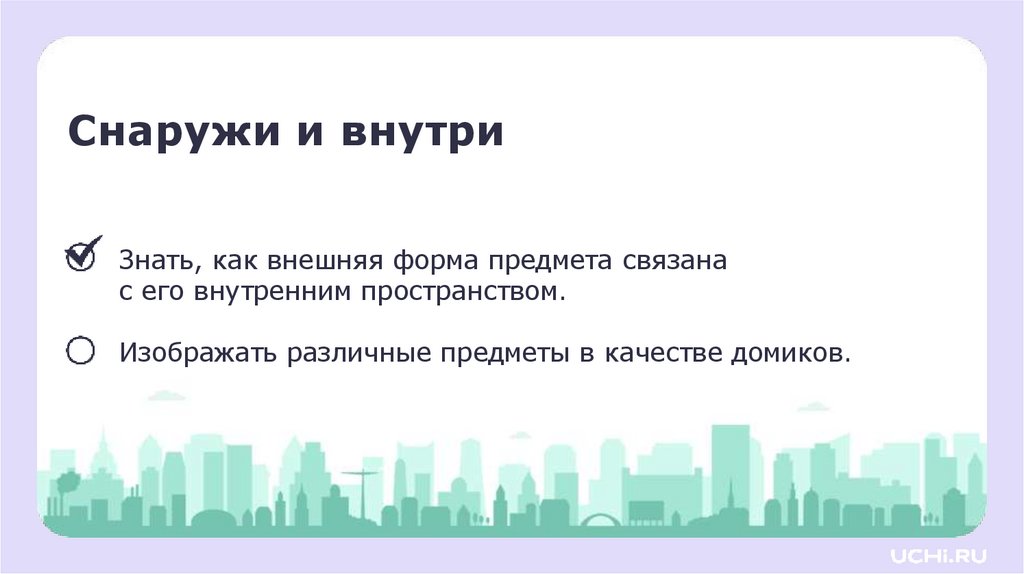Изо_ 1 класс_ Снаружи и внутри. Игровое графическое изображение разных предметов в качестве домиков